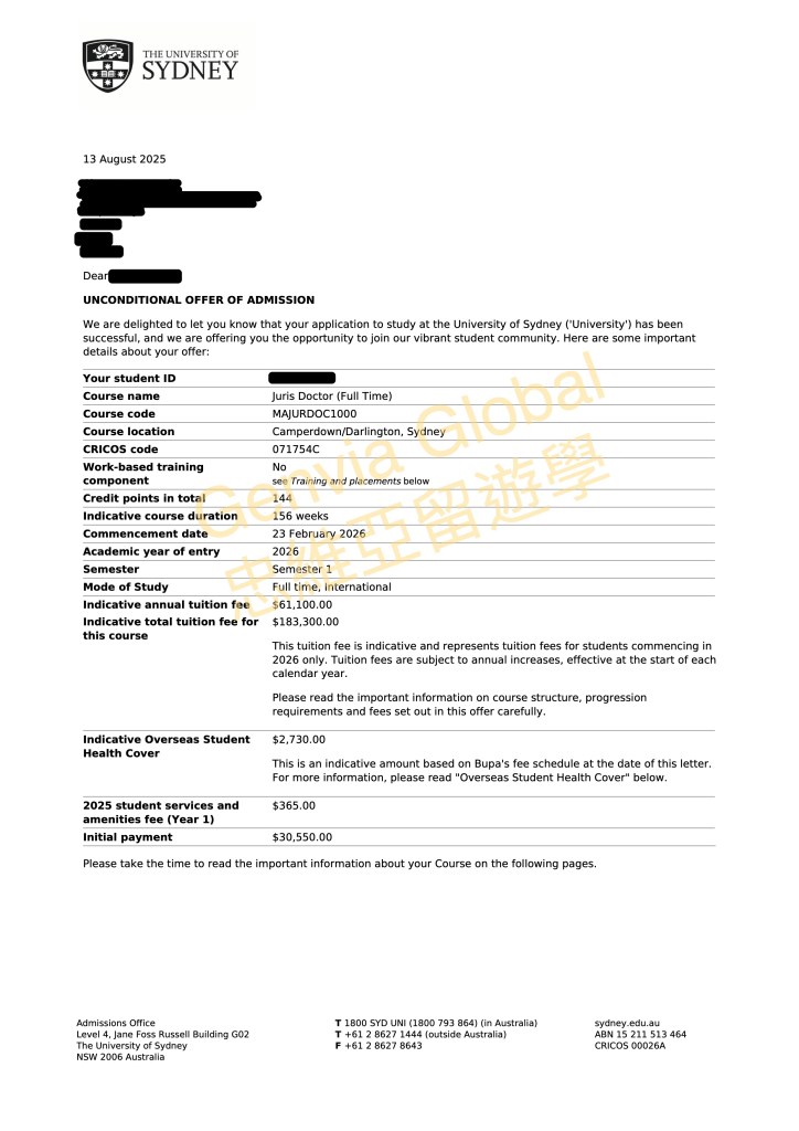 🎉 錄取喜訊!Genvia Global 忠維亞留學顧問 David 成功申請並錄取世界百大名校 The University of Sydney 雪梨大學法律職業博士 Juris Doctor(JD)課程!🏛️✨